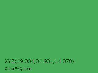 XYZ 19.304,31.931,14.378 Color is a normal green color and the nearest color is Chateau Green #40a860. Hex code #47ad58 and RGB value is rgb(71,173,88). In RGB color space, this color is composed of 28% red, 68% green, 35% blue, In CMYK color space, this color is composed of 59% cyan, 0% magenta, 49% yellow , 32% black , In HSL color space, this color has a hue angle of 130° , 42% saturation and 48% lightness.