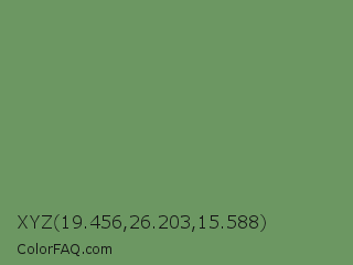 XYZ 19.456,26.203,15.588 Color is a normal green color and the nearest color is Russian Green #679267. Hex code #6c9762 and RGB value is rgb(108,151,98). In RGB color space, this color is composed of 42% red, 59% green, 38% blue, In CMYK color space, this color is composed of 28% cyan, 0% magenta, 35% yellow , 41% black , In HSL color space, this color has a hue angle of 109° , 21% saturation and 49% lightness.