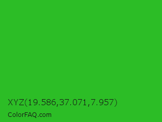 XYZ 19.586,37.071,7.957 Color is a normal green color and the nearest color is Wageningen Green #34b233. Hex code #2cbd26 and RGB value is rgb(44,189,38). In RGB color space, this color is composed of 17% red, 74% green, 15% blue, In CMYK color space, this color is composed of 77% cyan, 0% magenta, 80% yellow , 26% black , In HSL color space, this color has a hue angle of 118° , 67% saturation and 45% lightness.