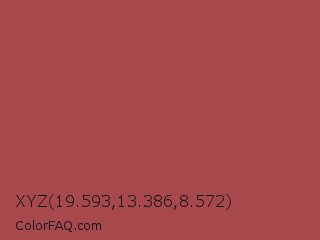 XYZ 19.593,13.386,8.572 Color is a normal red color and the nearest color is English Red #ab4b52. Hex code #a7484d and RGB value is rgb(167,72,77). In RGB color space, this color is composed of 65% red, 28% green, 30% blue, In CMYK color space, this color is composed of 0% cyan, 57% magenta, 54% yellow , 35% black , In HSL color space, this color has a hue angle of 357° , 40% saturation and 47% lightness.