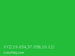 XYZ 19.654,37.058,10.12 Color is a normal green color and the nearest color is Wageningen Green #34b233. Hex code #23bd3a and RGB value is rgb(35,189,58). In RGB color space, this color is composed of 14% red, 74% green, 23% blue, In CMYK color space, this color is composed of 81% cyan, 0% magenta, 69% yellow , 26% black , In HSL color space, this color has a hue angle of 129° , 69% saturation and 44% lightness.