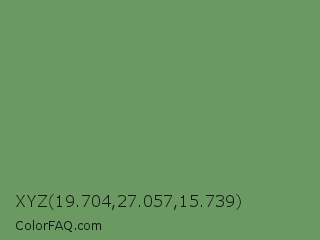 XYZ 19.704,27.057,15.739 Color is a normal green color and the nearest color is Russian Green #679267. Hex code #6a9a62 and RGB value is rgb(106,154,98). In RGB color space, this color is composed of 42% red, 60% green, 38% blue, In CMYK color space, this color is composed of 31% cyan, 0% magenta, 36% yellow , 40% black , In HSL color space, this color has a hue angle of 111° , 22% saturation and 49% lightness.