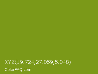 XYZ 19.724,27.059,5.048 Color is a normal lime color and the nearest color is Trendy Green #7c881a. Hex code #7b9918 and RGB value is rgb(123,153,24). In RGB color space, this color is composed of 48% red, 60% green, 9% blue, In CMYK color space, this color is composed of 20% cyan, 0% magenta, 84% yellow , 40% black , In HSL color space, this color has a hue angle of 74° , 73% saturation and 35% lightness.