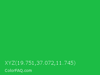 XYZ 19.751,37.072,11.745 Color is a normal green color and the nearest color is Dark Pastel Green #03c03c. Hex code #1cbd45 and RGB value is rgb(28,189,69). In RGB color space, this color is composed of 11% red, 74% green, 27% blue, In CMYK color space, this color is composed of 85% cyan, 0% magenta, 63% yellow , 26% black , In HSL color space, this color has a hue angle of 135° , 74% saturation and 43% lightness.
