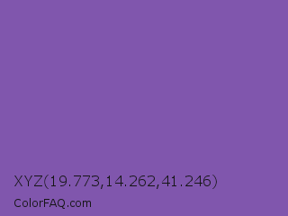 XYZ 19.773,14.262,41.246 Color is a normal violet color and the nearest color is Royal Purple #7851a9. Hex code #8056ad and RGB value is rgb(128,86,173). In RGB color space, this color is composed of 50% red, 34% green, 68% blue, In CMYK color space, this color is composed of 26% cyan, 50% magenta, 0% yellow , 32% black , In HSL color space, this color has a hue angle of 269° , 35% saturation and 51% lightness.