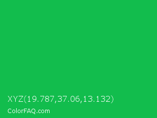 XYZ 19.787,37.06,13.132 Color is a normal green color and the nearest color is Dark Pastel Green #03c03c. Hex code #12bd4d and RGB value is rgb(18,189,77). In RGB color space, this color is composed of 7% red, 74% green, 30% blue, In CMYK color space, this color is composed of 90% cyan, 0% magenta, 59% yellow , 26% black , In HSL color space, this color has a hue angle of 141° , 83% saturation and 41% lightness.