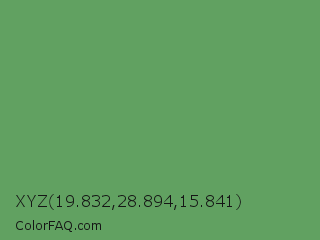 XYZ 19.832,28.894,15.841 Color is a normal green color and the nearest color is Russian Green #679267. Hex code #61a161 and RGB value is rgb(97,161,97). In RGB color space, this color is composed of 38% red, 63% green, 38% blue, In CMYK color space, this color is composed of 40% cyan, 0% magenta, 40% yellow , 37% black , In HSL color space, this color has a hue angle of 120° , 25% saturation and 51% lightness.