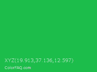 XYZ 19.913,37.136,12.597 Color is a normal green color and the nearest color is Dark Pastel Green #03c03c. Hex code #1cbd4a and RGB value is rgb(28,189,74). In RGB color space, this color is composed of 11% red, 74% green, 29% blue, In CMYK color space, this color is composed of 85% cyan, 0% magenta, 61% yellow , 26% black , In HSL color space, this color has a hue angle of 137° , 74% saturation and 43% lightness.
