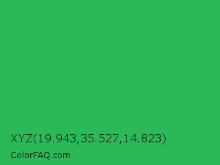 XYZ 19.943,35.527,14.823 Color is a normal green color and the nearest color is Chateau Green #40a860. Hex code #2db857 and RGB value is rgb(45,184,87). In RGB color space, this color is composed of 18% red, 72% green, 34% blue, In CMYK color space, this color is composed of 76% cyan, 0% magenta, 53% yellow , 28% black , In HSL color space, this color has a hue angle of 138° , 61% saturation and 45% lightness.