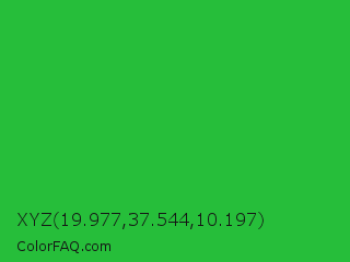 XYZ 19.977,37.544,10.197 Color is a normal green color and the nearest color is Wageningen Green #34b233. Hex code #26be3a and RGB value is rgb(38,190,58). In RGB color space, this color is composed of 15% red, 75% green, 23% blue, In CMYK color space, this color is composed of 80% cyan, 0% magenta, 69% yellow , 25% black , In HSL color space, this color has a hue angle of 128° , 67% saturation and 45% lightness.