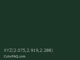 XYZ 2.075,2.919,2.288 Color is a very dark green color and the nearest color is Celtic #163222. Hex code #1b3526 and RGB value is rgb(27,53,38). In RGB color space, this color is composed of 11% red, 21% green, 15% blue, In CMYK color space, this color is composed of 49% cyan, 0% magenta, 28% yellow , 79% black , In HSL color space, this color has a hue angle of 145° , 33% saturation and 16% lightness.