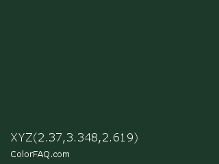 XYZ 2.37,3.348,2.619 Color is a very dark green color and the nearest color is Medium Jungle Green #1c352d. Hex code #1d3929 and RGB value is rgb(29,57,41). In RGB color space, this color is composed of 11% red, 22% green, 16% blue, In CMYK color space, this color is composed of 49% cyan, 0% magenta, 28% yellow , 78% black , In HSL color space, this color has a hue angle of 146° , 33% saturation and 17% lightness.
