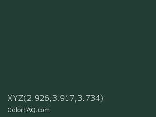 XYZ 2.926,3.917,3.734 Color is a very dark green color and the nearest color is Everglade #1c402e. Hex code #223d33 and RGB value is rgb(34,61,51). In RGB color space, this color is composed of 13% red, 24% green, 20% blue, In CMYK color space, this color is composed of 44% cyan, 0% magenta, 16% yellow , 76% black , In HSL color space, this color has a hue angle of 158° , 28% saturation and 19% lightness.