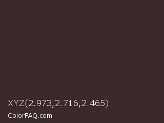 XYZ 2.973,2.716,2.465 Color is a very dark red color and the nearest color is English Walnut #3e2b23. Hex code #3a2a29 and RGB value is rgb(58,42,41). In RGB color space, this color is composed of 23% red, 16% green, 16% blue, In CMYK color space, this color is composed of 0% cyan, 28% magenta, 29% yellow , 77% black , In HSL color space, this color has a hue angle of 4° , 17% saturation and 19% lightness.