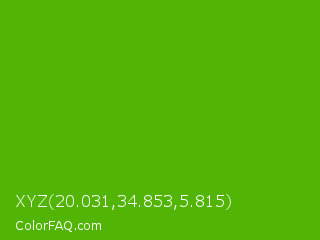 XYZ 20.031,34.853,5.815 Color is a normal green color and the nearest color is Kelly Green #4cbb17. Hex code #52b505 and RGB value is rgb(82,181,5). In RGB color space, this color is composed of 32% red, 71% green, 2% blue, In CMYK color space, this color is composed of 55% cyan, 0% magenta, 97% yellow , 29% black , In HSL color space, this color has a hue angle of 94° , 95% saturation and 36% lightness.