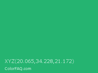 XYZ 20.065,34.228,21.172 Color is a normal green color and the nearest color is Green Crayola #1cac78. Hex code #25b471 and RGB value is rgb(37,180,113). In RGB color space, this color is composed of 15% red, 71% green, 44% blue, In CMYK color space, this color is composed of 79% cyan, 0% magenta, 37% yellow , 29% black , In HSL color space, this color has a hue angle of 152° , 66% saturation and 43% lightness.