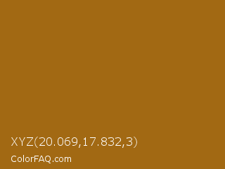 XYZ 20.069,17.832,3 Color is a normal orange color and the nearest color is Reno Sand #a86515. Hex code #a26913 and RGB value is rgb(162,105,19). In RGB color space, this color is composed of 64% red, 41% green, 7% blue, In CMYK color space, this color is composed of 0% cyan, 35% magenta, 88% yellow , 36% black , In HSL color space, this color has a hue angle of 36° , 79% saturation and 35% lightness.