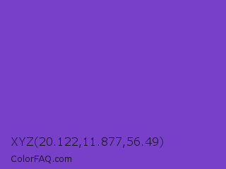 XYZ 20.122,11.877,56.49 Color is a normal violet color and the nearest color is Fuchsia Blue #7a58c1. Hex code #7840c9 and RGB value is rgb(120,64,201). In RGB color space, this color is composed of 47% red, 25% green, 79% blue, In CMYK color space, this color is composed of 40% cyan, 68% magenta, 0% yellow , 21% black , In HSL color space, this color has a hue angle of 265° , 56% saturation and 52% lightness.