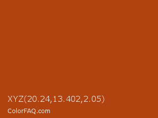 XYZ 20.24,13.402,2.05 Color is a normal orange color and the nearest color is Rust #b7410e. Hex code #b14311 and RGB value is rgb(177,67,17). In RGB color space, this color is composed of 69% red, 26% green, 7% blue, In CMYK color space, this color is composed of 0% cyan, 62% magenta, 90% yellow , 31% black , In HSL color space, this color has a hue angle of 19° , 82% saturation and 38% lightness.