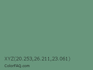 XYZ 20.253,26.211,23.061 Color is a normal green color and the nearest color is Laurel #749378. Hex code #68967c and RGB value is rgb(104,150,124). In RGB color space, this color is composed of 41% red, 59% green, 49% blue, In CMYK color space, this color is composed of 31% cyan, 0% magenta, 17% yellow , 41% black , In HSL color space, this color has a hue angle of 146° , 18% saturation and 50% lightness.