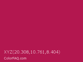 XYZ 20.308,10.761,8.404 Color is a normal rose color and the nearest color is French Wine #ac1e44. Hex code #b3174f and RGB value is rgb(179,23,79). In RGB color space, this color is composed of 70% red, 9% green, 31% blue, In CMYK color space, this color is composed of 0% cyan, 87% magenta, 56% yellow , 30% black , In HSL color space, this color has a hue angle of 338° , 77% saturation and 40% lightness.