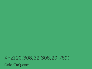 XYZ 20.308,32.308,20.789 Color is a normal green color and the nearest color is Ocean Green #41aa78. Hex code #44ad71 and RGB value is rgb(68,173,113). In RGB color space, this color is composed of 27% red, 68% green, 44% blue, In CMYK color space, this color is composed of 61% cyan, 0% magenta, 35% yellow , 32% black , In HSL color space, this color has a hue angle of 146° , 44% saturation and 47% lightness.