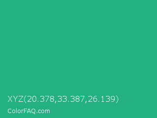 XYZ 20.378,33.387,26.139 Color is a normal green color and the nearest color is Mountain Meadow Crayola #1ab385. Hex code #23b181 and RGB value is rgb(35,177,129). In RGB color space, this color is composed of 14% red, 69% green, 51% blue, In CMYK color space, this color is composed of 80% cyan, 0% magenta, 27% yellow , 31% black , In HSL color space, this color has a hue angle of 160° , 67% saturation and 42% lightness.