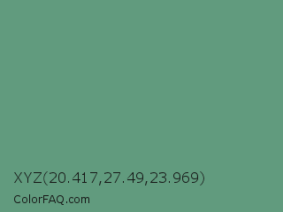 XYZ 20.417,27.49,23.969 Color is a normal green color and the nearest color is Shiny Shamrock #5fa778. Hex code #619b7e and RGB value is rgb(97,155,126). In RGB color space, this color is composed of 38% red, 61% green, 49% blue, In CMYK color space, this color is composed of 37% cyan, 0% magenta, 19% yellow , 39% black , In HSL color space, this color has a hue angle of 150° , 23% saturation and 49% lightness.