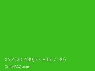 XYZ 20.439,37.845,7.39 Color is a normal green color and the nearest color is Harlequin Green #46cb18. Hex code #3bbe1d and RGB value is rgb(59,190,29). In RGB color space, this color is composed of 23% red, 75% green, 11% blue, In CMYK color space, this color is composed of 69% cyan, 0% magenta, 85% yellow , 25% black , In HSL color space, this color has a hue angle of 109° , 74% saturation and 43% lightness.