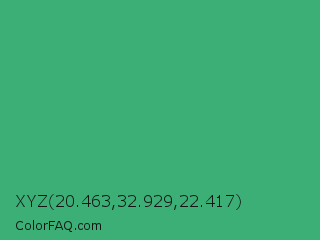 XYZ 20.463,32.929,22.417 Color is a normal green color and the nearest color is Medium Sea Green #3cb371. Hex code #3caf76 and RGB value is rgb(60,175,118). In RGB color space, this color is composed of 24% red, 69% green, 46% blue, In CMYK color space, this color is composed of 66% cyan, 0% magenta, 33% yellow , 31% black , In HSL color space, this color has a hue angle of 150° , 49% saturation and 46% lightness.