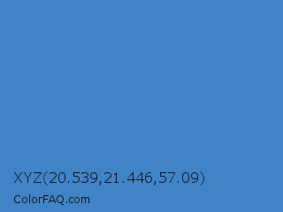 XYZ 20.539,21.446,57.09 Color is a normal blue color and the nearest color is Cyan Blue Azure #4682bf. Hex code #4083c7 and RGB value is rgb(64,131,199). In RGB color space, this color is composed of 25% red, 51% green, 78% blue, In CMYK color space, this color is composed of 68% cyan, 34% magenta, 0% yellow , 22% black , In HSL color space, this color has a hue angle of 210° , 55% saturation and 52% lightness.