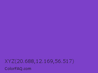 XYZ 20.688,12.169,56.517 Color is a normal violet color and the nearest color is Fuchsia Blue #7a58c1. Hex code #7c40c9 and RGB value is rgb(124,64,201). In RGB color space, this color is composed of 49% red, 25% green, 79% blue, In CMYK color space, this color is composed of 38% cyan, 68% magenta, 0% yellow , 21% black , In HSL color space, this color has a hue angle of 266° , 56% saturation and 52% lightness.