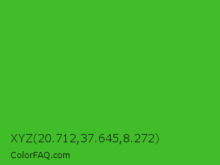 XYZ 20.712,37.645,8.272 Color is a normal green color and the nearest color is Wageningen Green #34b233. Hex code #40bd29 and RGB value is rgb(64,189,41). In RGB color space, this color is composed of 25% red, 74% green, 16% blue, In CMYK color space, this color is composed of 66% cyan, 0% magenta, 78% yellow , 26% black , In HSL color space, this color has a hue angle of 111° , 64% saturation and 45% lightness.