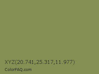 XYZ 20.741,25.317,11.977 Color is a normal lime color and the nearest color is Moss Green #8a9a5b. Hex code #829053 and RGB value is rgb(130,144,83). In RGB color space, this color is composed of 51% red, 56% green, 33% blue, In CMYK color space, this color is composed of 10% cyan, 0% magenta, 42% yellow , 44% black , In HSL color space, this color has a hue angle of 74° , 27% saturation and 45% lightness.