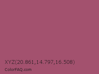 XYZ 20.861,14.797,16.508 Color is a normal rose color and the nearest color is China Rose #a8516e. Hex code #a3516e and RGB value is rgb(163,81,110). In RGB color space, this color is composed of 64% red, 32% green, 43% blue, In CMYK color space, this color is composed of 0% cyan, 50% magenta, 33% yellow , 36% black , In HSL color space, this color has a hue angle of 339° , 34% saturation and 48% lightness.
