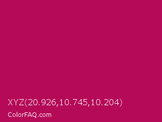 XYZ 20.926,10.745,10.204 Color is a normal rose color and the nearest color is Lipstick #ab0563. Hex code #b50a58 and RGB value is rgb(181,10,88). In RGB color space, this color is composed of 71% red, 4% green, 35% blue, In CMYK color space, this color is composed of 0% cyan, 94% magenta, 51% yellow , 29% black , In HSL color space, this color has a hue angle of 333° , 90% saturation and 37% lightness.