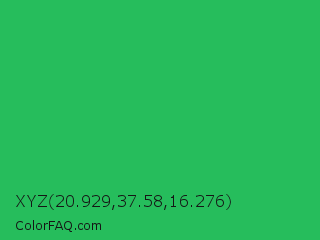 XYZ 20.929,37.58,16.276 Color is a normal green color and the nearest color is Medium Sea Green #3cb371. Hex code #26bd5c and RGB value is rgb(38,189,92). In RGB color space, this color is composed of 15% red, 74% green, 36% blue, In CMYK color space, this color is composed of 80% cyan, 0% magenta, 51% yellow , 26% black , In HSL color space, this color has a hue angle of 141° , 67% saturation and 45% lightness.