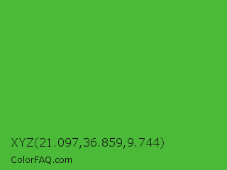 XYZ 21.097,36.859,9.744 Color is a normal green color and the nearest color is Apple #4fa83d. Hex code #4aba38 and RGB value is rgb(74,186,56). In RGB color space, this color is composed of 29% red, 73% green, 22% blue, In CMYK color space, this color is composed of 60% cyan, 0% magenta, 70% yellow , 27% black , In HSL color space, this color has a hue angle of 112° , 54% saturation and 47% lightness.
