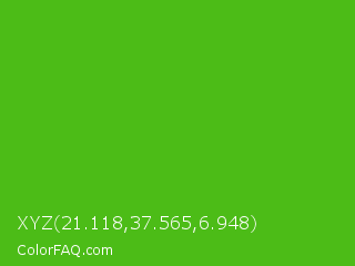 XYZ 21.118,37.565,6.948 Color is a normal green color and the nearest color is Kelly Green #4cbb17. Hex code #4cbc17 and RGB value is rgb(76,188,23). In RGB color space, this color is composed of 30% red, 74% green, 9% blue, In CMYK color space, this color is composed of 60% cyan, 0% magenta, 88% yellow , 26% black , In HSL color space, this color has a hue angle of 101° , 78% saturation and 41% lightness.
