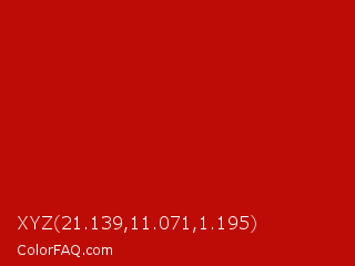 XYZ 21.139,11.071,1.195 Color is a normal red color and the nearest color is Milano Red #b81104. Hex code #bd0b06 and RGB value is rgb(189,11,6). In RGB color space, this color is composed of 74% red, 4% green, 2% blue, In CMYK color space, this color is composed of 0% cyan, 94% magenta, 97% yellow , 26% black , In HSL color space, this color has a hue angle of 2° , 94% saturation and 38% lightness.