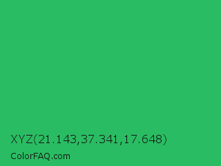 XYZ 21.143,37.341,17.648 Color is a normal green color and the nearest color is Medium Sea Green #3cb371. Hex code #2abc62 and RGB value is rgb(42,188,98). In RGB color space, this color is composed of 16% red, 74% green, 38% blue, In CMYK color space, this color is composed of 78% cyan, 0% magenta, 48% yellow , 26% black , In HSL color space, this color has a hue angle of 143° , 63% saturation and 45% lightness.