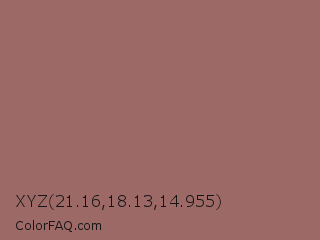 XYZ 21.16,18.13,14.955 Color is a normal red color and the nearest color is Copper Rose #996666. Hex code #9c6966 and RGB value is rgb(156,105,102). In RGB color space, this color is composed of 61% red, 41% green, 40% blue, In CMYK color space, this color is composed of 0% cyan, 33% magenta, 35% yellow , 39% black , In HSL color space, this color has a hue angle of 3° , 21% saturation and 51% lightness.