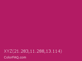XYZ 21.283,11.288,13.114 Color is a normal rose color and the nearest color is Rose Red #c21e56. Hex code #b31b64 and RGB value is rgb(179,27,100). In RGB color space, this color is composed of 70% red, 11% green, 39% blue, In CMYK color space, this color is composed of 0% cyan, 85% magenta, 44% yellow , 30% black , In HSL color space, this color has a hue angle of 331° , 74% saturation and 40% lightness.