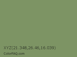 XYZ 21.348,26.46,16.039 Color is a normal green color and the nearest color is Avocado Pulp #888d65. Hex code #7d9464 and RGB value is rgb(125,148,100). In RGB color space, this color is composed of 49% red, 58% green, 39% blue, In CMYK color space, this color is composed of 16% cyan, 0% magenta, 32% yellow , 42% black , In HSL color space, this color has a hue angle of 89° , 19% saturation and 49% lightness.