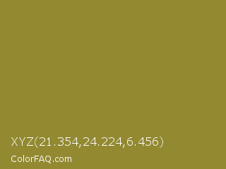 XYZ 21.354,24.224,6.456 Color is a normal yellow color and the nearest color is Sycamore #908d39. Hex code #928931 and RGB value is rgb(146,137,49). In RGB color space, this color is composed of 57% red, 54% green, 19% blue, In CMYK color space, this color is composed of 0% cyan, 6% magenta, 66% yellow , 43% black , In HSL color space, this color has a hue angle of 54° , 50% saturation and 38% lightness.