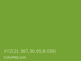 XYZ 21.367,30.65,8.039 Color is a normal green color and the nearest color is Palm Leaf #6f9940. Hex code #76a434 and RGB value is rgb(118,164,52). In RGB color space, this color is composed of 46% red, 64% green, 20% blue, In CMYK color space, this color is composed of 28% cyan, 0% magenta, 68% yellow , 36% black , In HSL color space, this color has a hue angle of 85° , 52% saturation and 42% lightness.