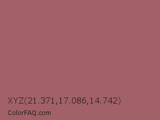 XYZ 21.371,17.086,14.742 Color is a normal red color and the nearest color is Copper Rose #996666. Hex code #a16166 and RGB value is rgb(161,97,102). In RGB color space, this color is composed of 63% red, 38% green, 40% blue, In CMYK color space, this color is composed of 0% cyan, 40% magenta, 37% yellow , 37% black , In HSL color space, this color has a hue angle of 355° , 25% saturation and 51% lightness.
