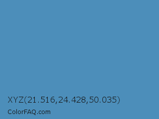 XYZ 21.516,24.428,50.035 Color is a normal blue color and the nearest color is Cyan Azure #4e82b4. Hex code #4c8eba and RGB value is rgb(76,142,186). In RGB color space, this color is composed of 30% red, 56% green, 73% blue, In CMYK color space, this color is composed of 59% cyan, 24% magenta, 0% yellow , 27% black , In HSL color space, this color has a hue angle of 204° , 44% saturation and 51% lightness.