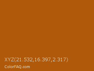 XYZ 21.532,16.397,2.317 Color is a normal orange color and the nearest color is Pumpkin Skin #b1610b. Hex code #b0590a and RGB value is rgb(176,89,10). In RGB color space, this color is composed of 69% red, 35% green, 4% blue, In CMYK color space, this color is composed of 0% cyan, 49% magenta, 94% yellow , 31% black , In HSL color space, this color has a hue angle of 29° , 89% saturation and 36% lightness.