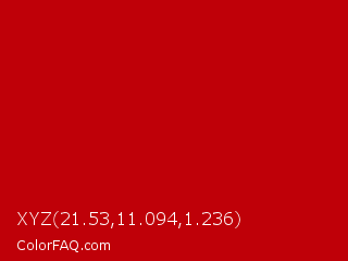 XYZ 21.53,11.094,1.236 Color is a normal red color and the nearest color is Guardsman Red #ba0101. Hex code #bf0008 and RGB value is rgb(191,0,8). In RGB color space, this color is composed of 75% red, 0% green, 3% blue, In CMYK color space, this color is composed of 0% cyan, 100% magenta, 96% yellow , 25% black , In HSL color space, this color has a hue angle of 357° , 100% saturation and 37% lightness.